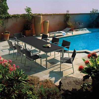 Vrtni namještaj ADRIA svojim jednostavnim dizajnom nudi praktično rješenje za opremanje terasa i vanjskih prostora. Kolekcija uključuje vrtne klupe, vrtne stolove i vrtne stolice. Stabilnost je osigurana čvrstom aluminijskom konstrukcijom. Vrtne stolice mogu se slagati jedna na drugu i iznimno su lagane. Sjedalo i naslon presvučeni su mrežastom tkaninom, a dostupne su i verzije s materijalom otpornim na razne vremenske pojave. Vrtni stolovi dolaze u različitim veličinama. Na raspolaganju su vam kvadratni vrtni stolovi, pravokutni vrtni stolovi i produljivi vrtni stolovi.
