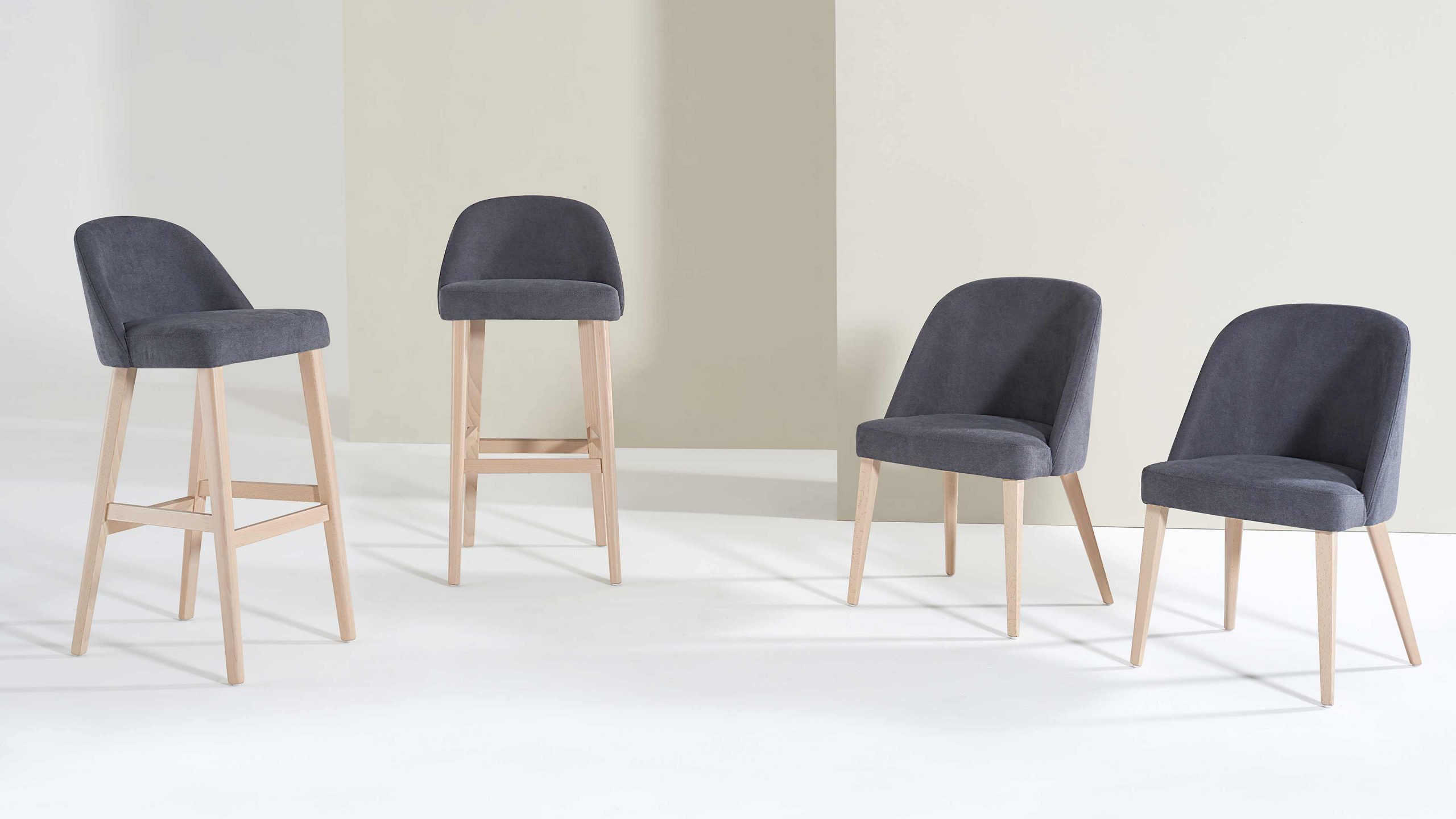 GIPSY kolekcija stolica uključuje stolicu, fotelju i barsku stolicu. Stolice su tapecirane na drvenim nogama koje mogu biti u različitim bojama po želji kupca.