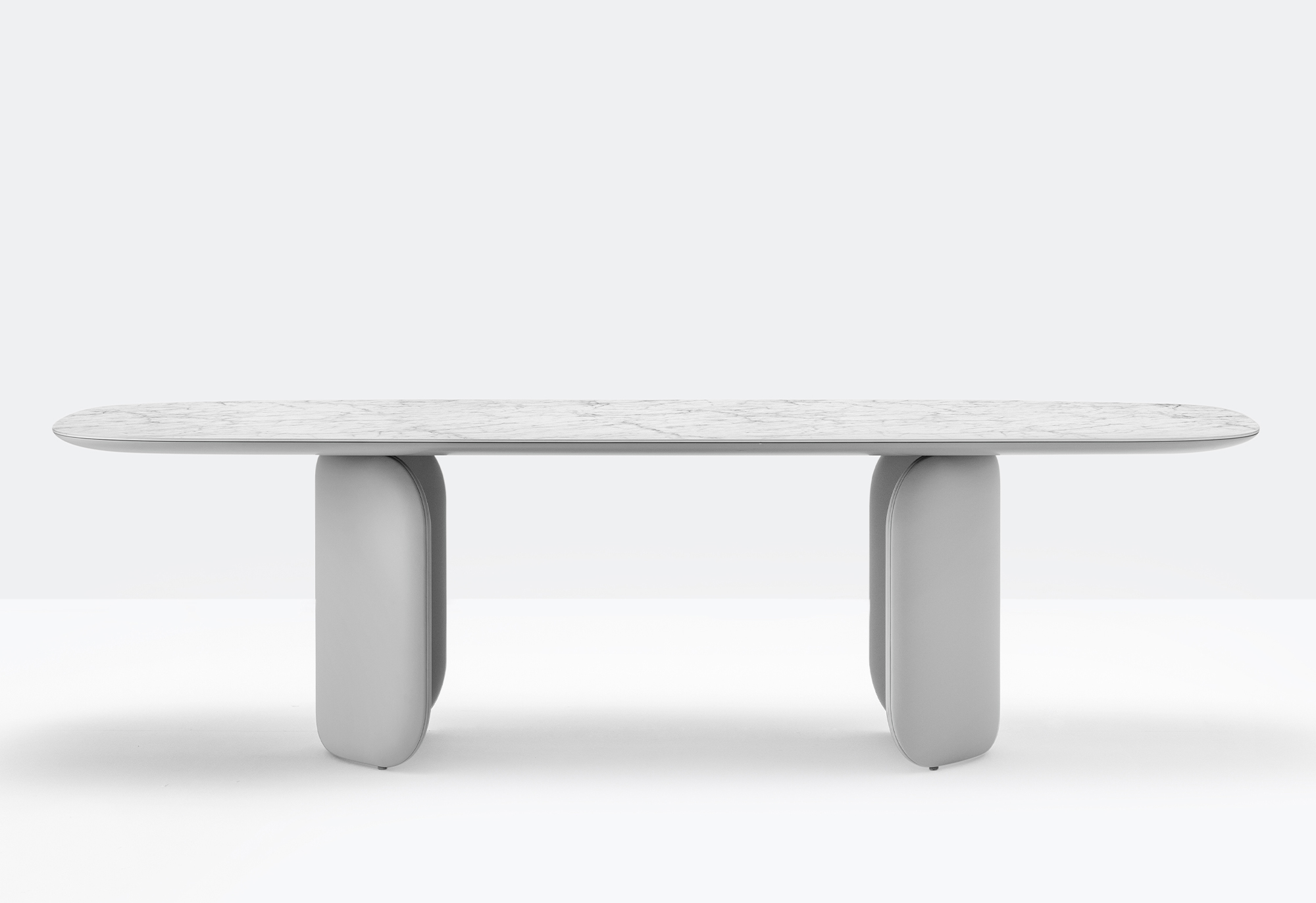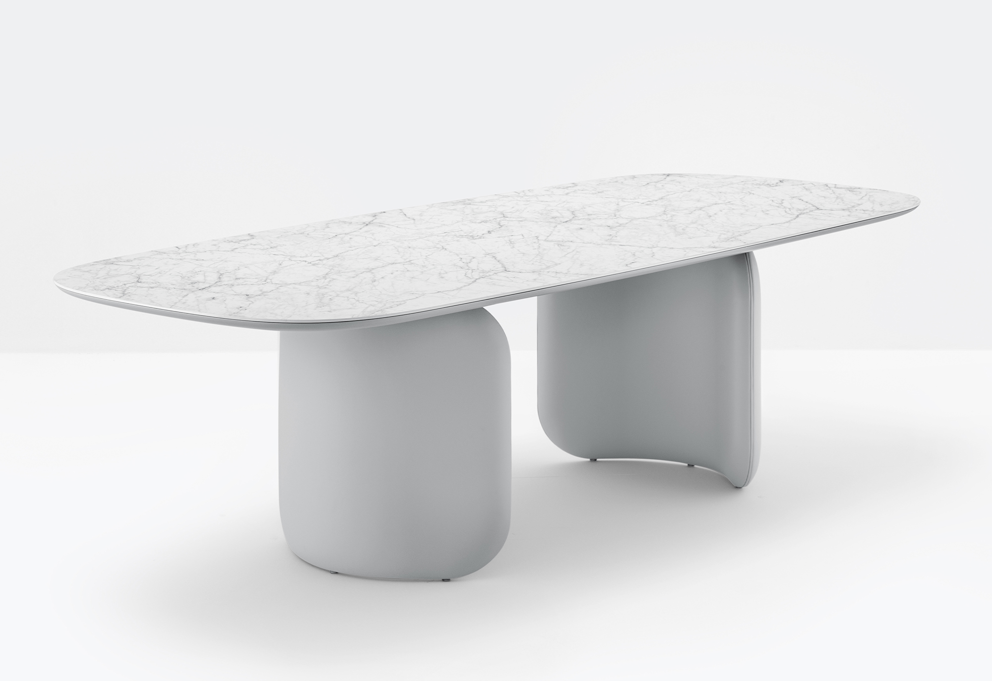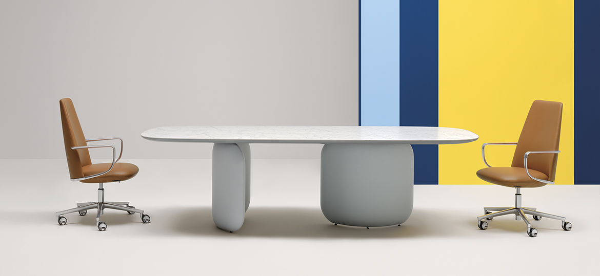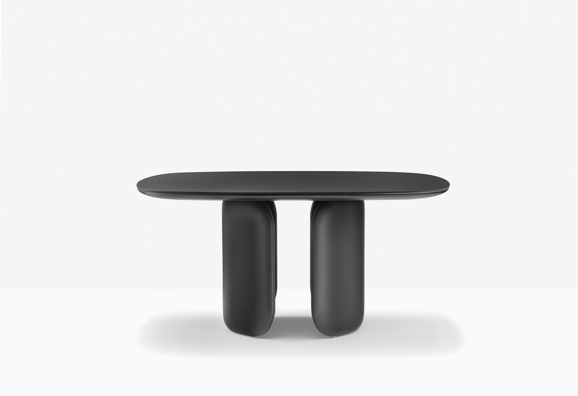 Moderan stol koji se sastoji od 2 simetrično postavljena elementa od tvrdog poliuretana presvučenog kožom. Gornja je ploča izrađena od ultratankog laminata obloženog MDF-om.