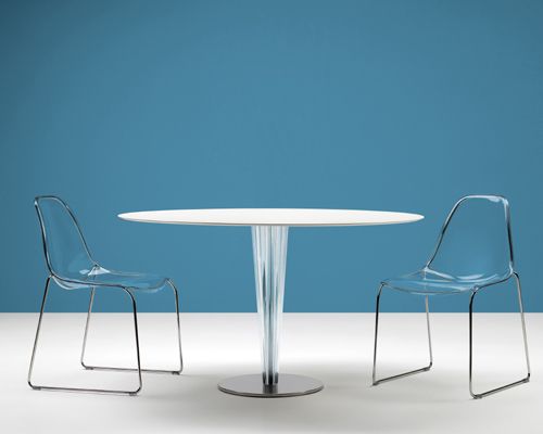 KRYSTAL stolovi su elegantni blagovaonski, kuhinjski i ugostiteljski stolovi ili kao stolovi za sjedenje, koji imaju stožasto oblikovanu centralnu nogu od metakrilata u bijeloj ili crnoj boji. Potonji svojim sjajem stvara zanimljiv estetski element koji se poigrava dnevnim ili umjetnim svjetlom i stvara čaroban ples svjetlosnih zraka. Stolovi KRYSTAL odlično se slažu s prozirnim plastičnim stolicama i metalnim stolicama. Središnja noga nastavlja se u podnožju u kružnu čeličnu bazu, koja se može brusiti ili polirati.