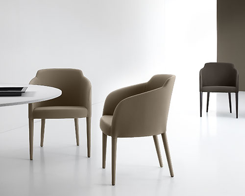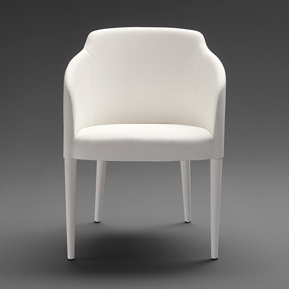 Moderna stolica od poliuretana. Elastične trake na sjedalu. Noge od jasenovog drveta u prirodnoj ili obojenoj varijanti.