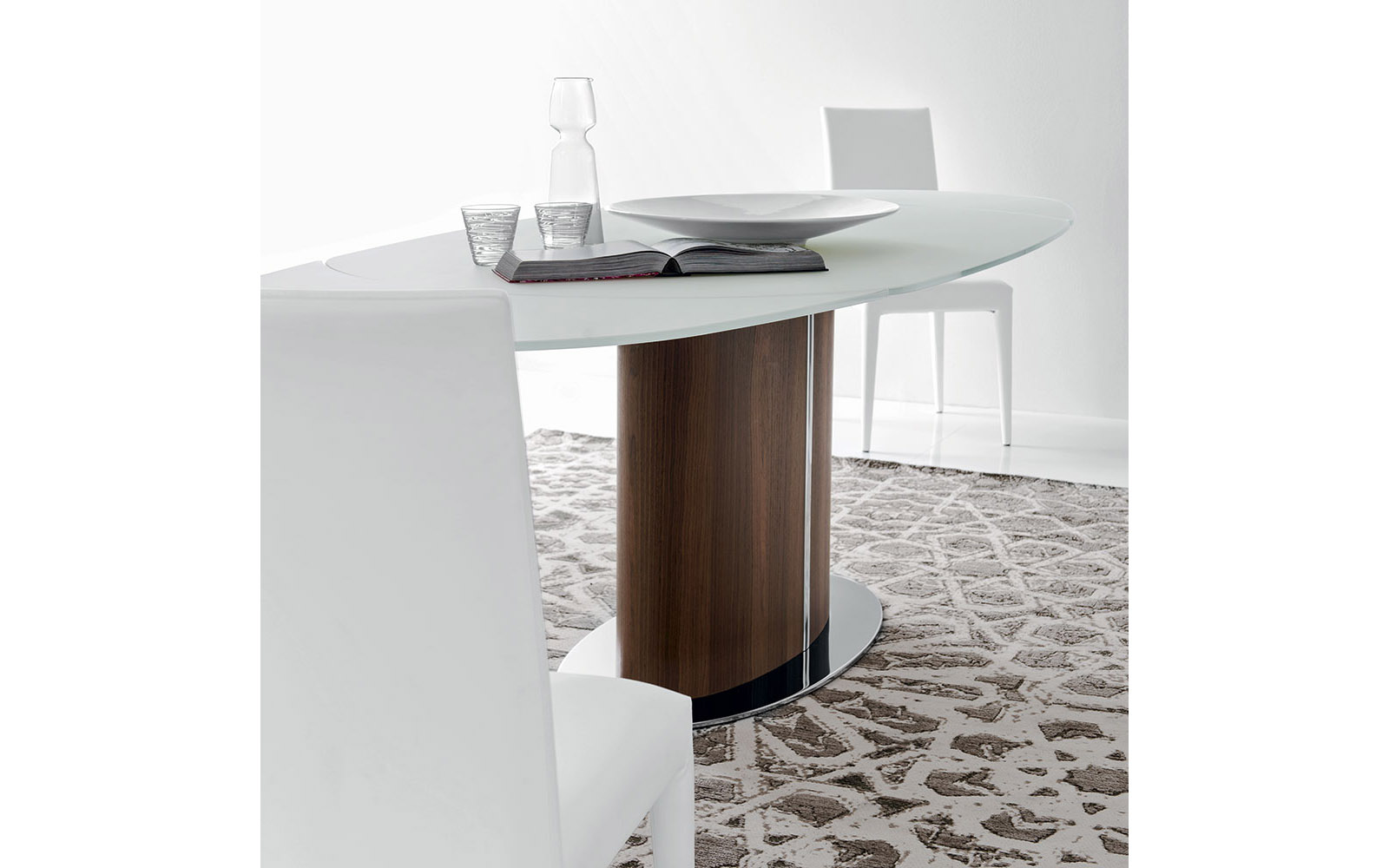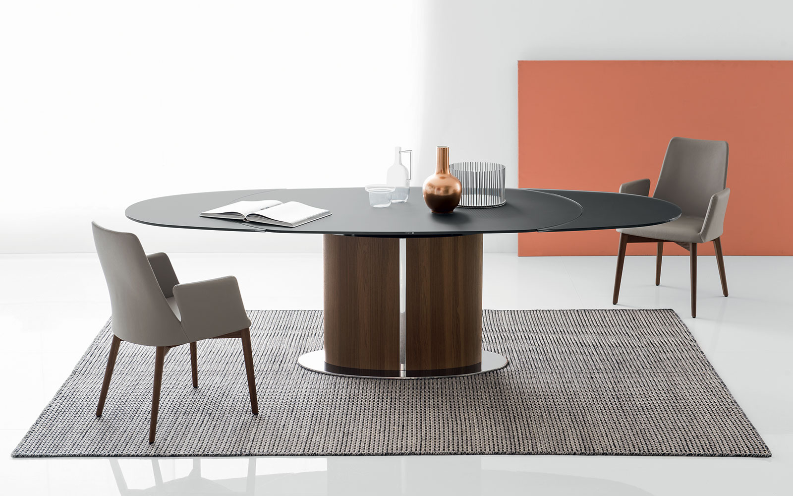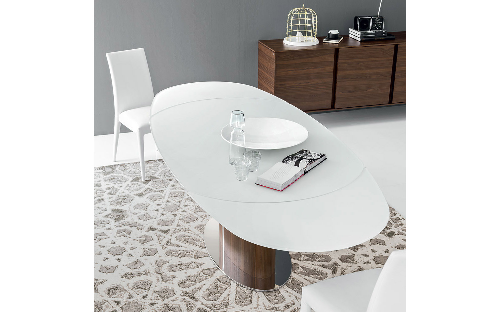Stol ODYSSEY ima hi-tech dizajn i elegantan oblik, što ga čini prikladnim za blagovaonicu. To je stol na razvlačenje s metalnom bazom i eliptičnom pločom od kaljenog stakla. Ima mehanizam za automatsko izvlačenje. Uređaj za zaključavanje sprječava slučajno zatvaranje.