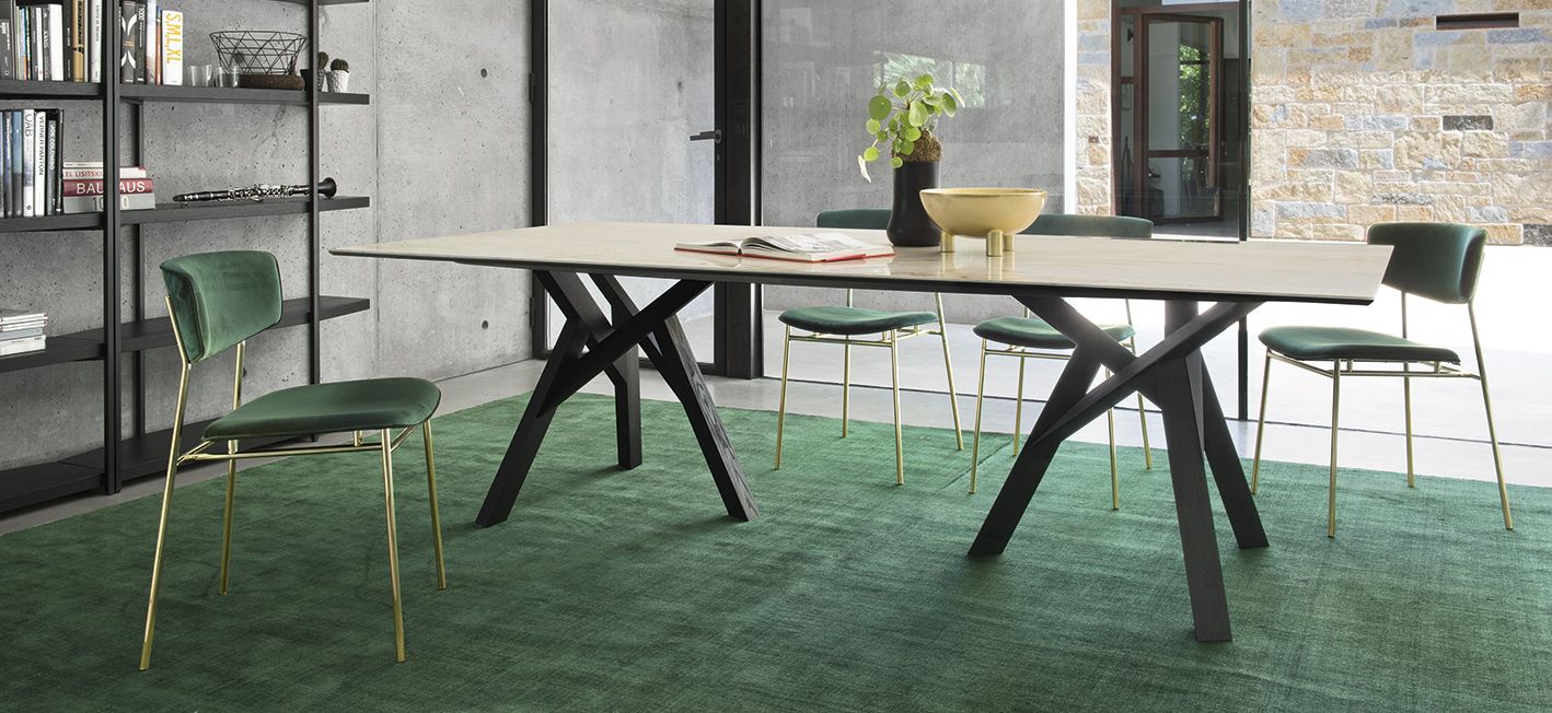 Metalna stolica, presvučena tekstilom ili kožom. Lakoća i elegancija stolca daje vintage dodir vašoj blagovaonici.