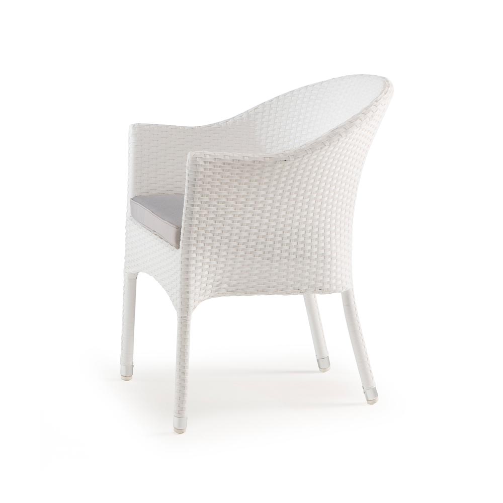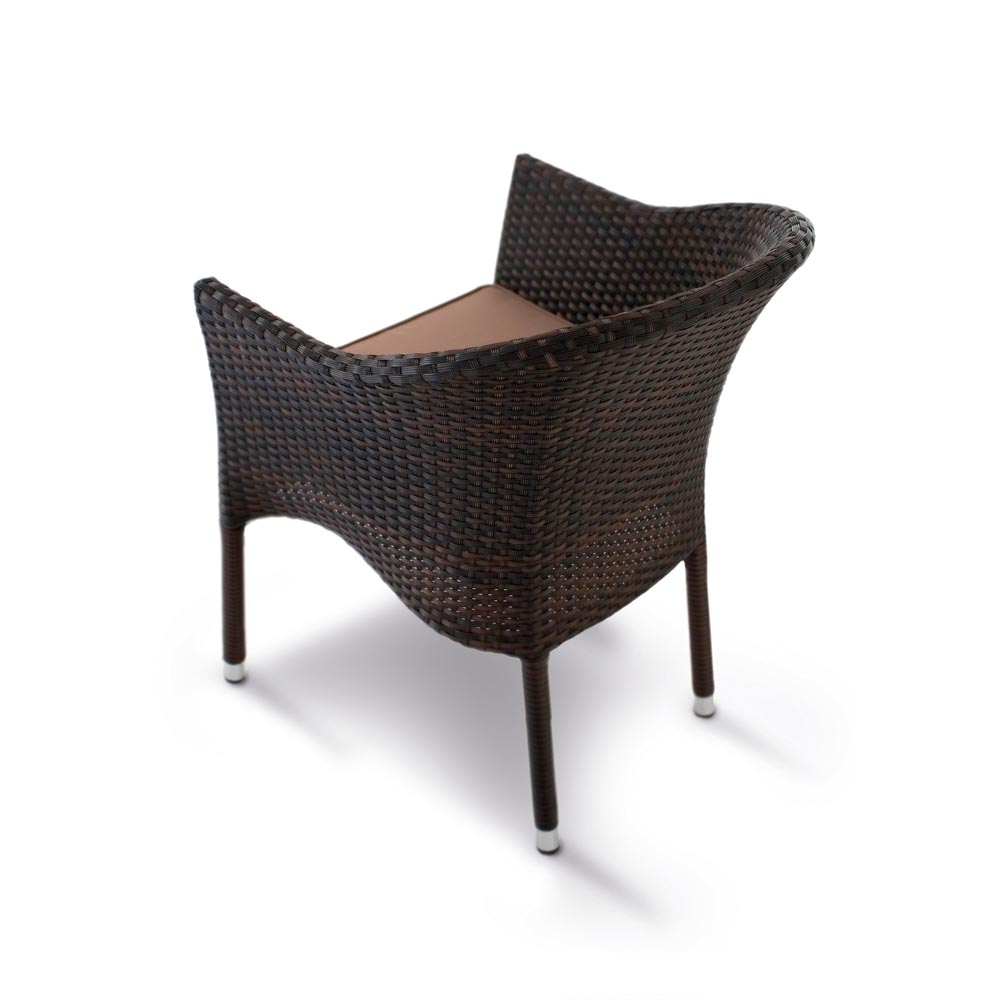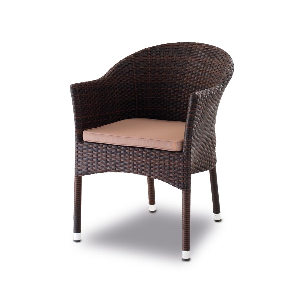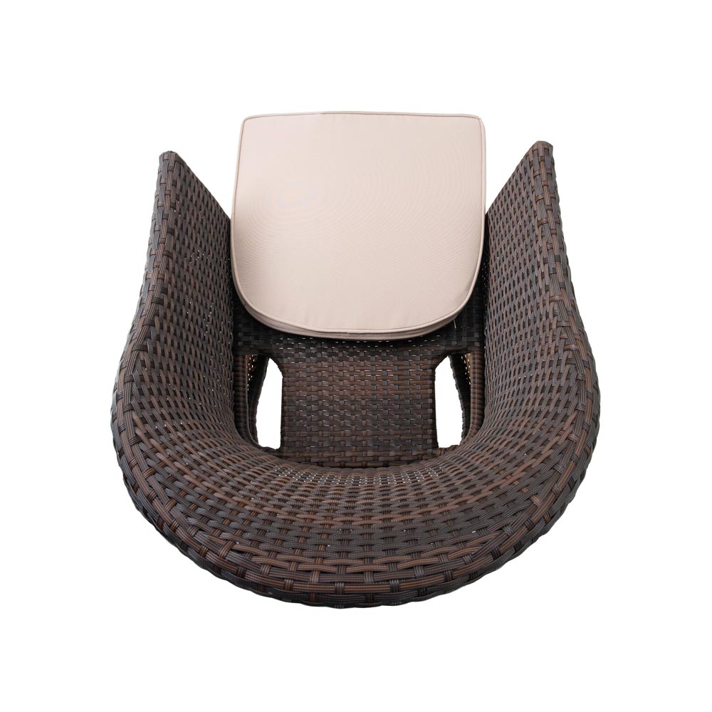 Udobna fotelja sa aluminijskom strukturom, polietilen debljine 1,5 mm, smeđa sa bež jastukom i bijela sa sivim jastukom.
