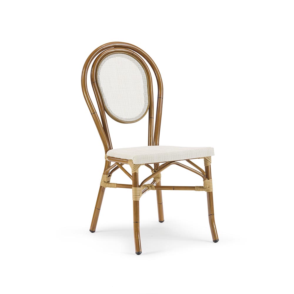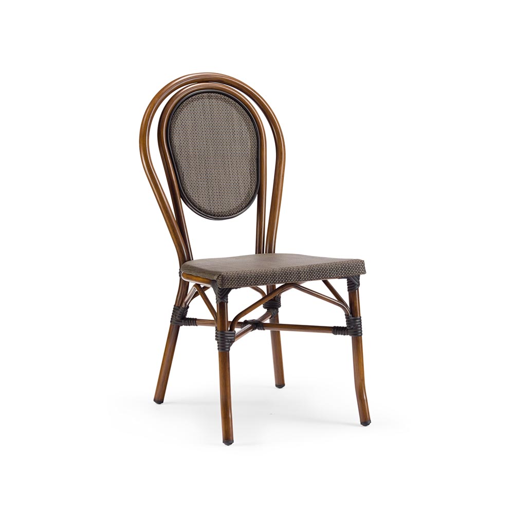 Stolica u aluminijskom okviru presvučena tekstilom s lakiranim “izgledom bambusa”