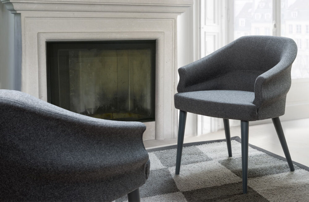 WAVY je fotelja modernih oblika, polukružna sa drvenim nogama ili obojena u istu boju kao i tekstil.