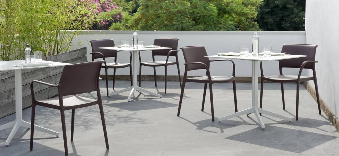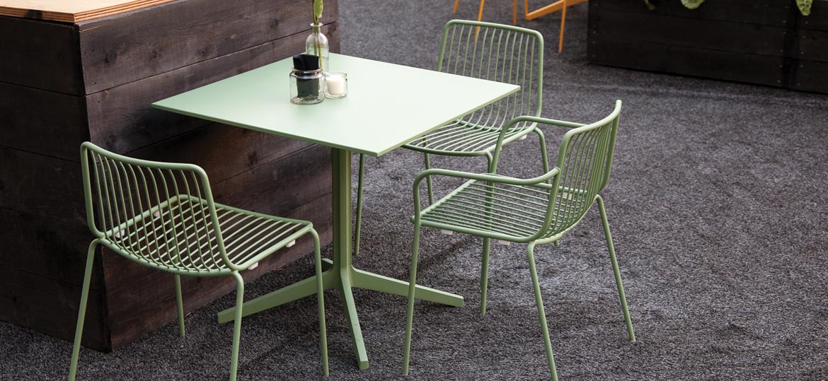 YPSILON barski i klub stolovi su sofisticirani i moderno dizajnirani stolovi koji gostima pružaju ugodno iskustvo. Izrađeni su iznimnom tehnološkom preciznošću. Otporne su na ljetne i zimske vremenske uvjete i vrlo su pogodne za postavljanje na terase, vrtove, plaže… Nosi ih čvrsta aluminijska središnja noga, koja se u podnožju nastavlja u četverokraku bazu (od istog materijala). Na donje krajeve nogu pričvršćene su plastične stopice koje osiguravaju stabilno prianjanje na površinu poda. Dostupne su laminirane, čelične i kompaktne ploče stolova . YPSILON barske i klub stolove možete odabrati u raznim dimenzijama i bojama.